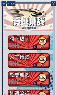 我为歌狂游戏是一款音乐趣味类游戏,在里面需要比赛猜出歌曲名字,谁的速度快谁就能获得游戏胜利,玩法简单,适合玩家在闲暇的时间进行游玩!